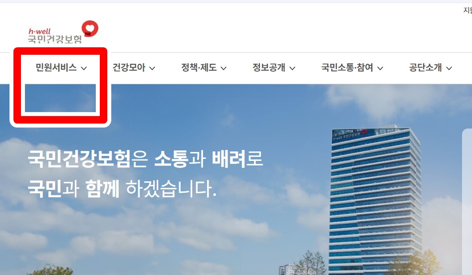 - 국민건강보험공단 홈페이지 접속