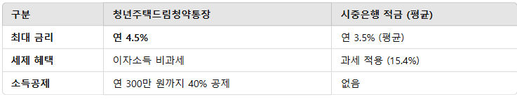 ✅ 청년주택드림청약통장이 금리 + 세제 혜택에서 훨씬 유리