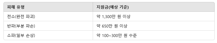 🏚️ 2. 주택 피해 지원금 – 전소, 반파 여부 따라 차등 지원