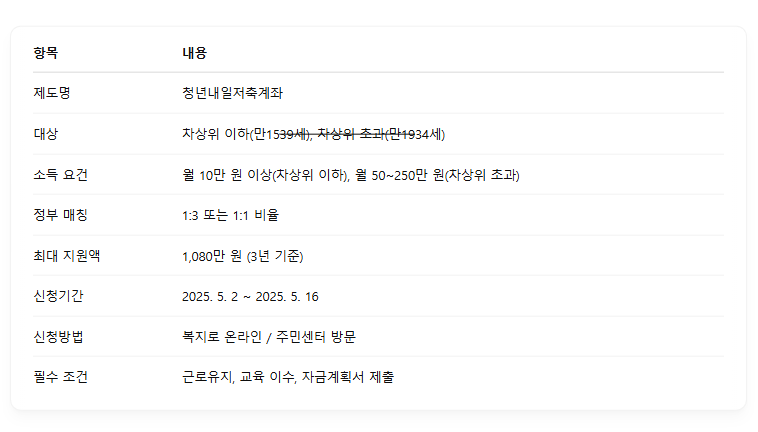 ✅ 청년내일저축계좌란?|정부가 저축을 도와주는 자산형성 지원제도