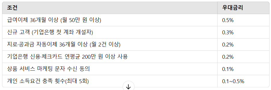 📌 우대금리 적용 조건으로 최대 연 1.5%p 추가 금리를 받을 수 있습니다.