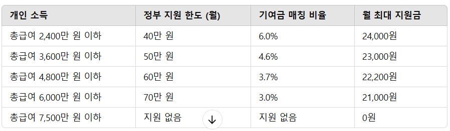 📌 소득별 정부기여금 지급 구조