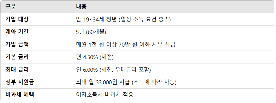 ✔ 가입 대상: 만 19~34세 청년 (소득 요건 충족)
