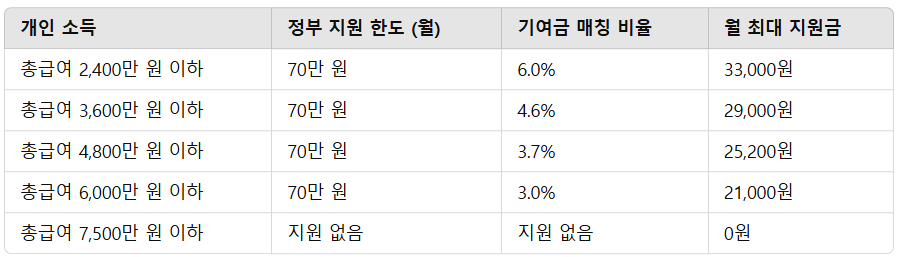 📌 소득별 정부기여금 지급 구조